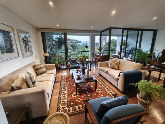 Lindo apartamento para la venta en el Poblado, Cerca a los Gonzales con un área de 210 m2 de 3 habitaciones cada una con baño, la hitación principal muy grande mas habitación de servicio, estudio amplio, balcón con vista definida a zona verde, cocina integral abierta, 2 salas, comedor, zona de ropas, 2 parqueaderos independientes y cuarto útil.