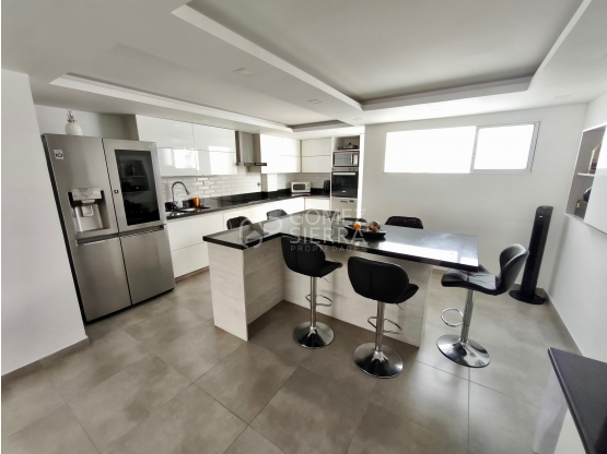 Linda casa para la venta en el sector de la Mota cerca al centro comercial Arkadia y el Aeroparque con un área de 225 m2 de 3 habitaciones cada una con baño, la habitación principal muy grande con balcón, amplia sala comedor, cocina integral con isla, zona de ropas, estudio y una terraza en la parte superior de mas o menos 25 m2 con espectacular vista.